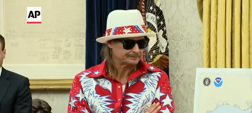 Kid Rock in the Oval Office with President Trump on March 31, 2025 (Associated Press/YouTube)