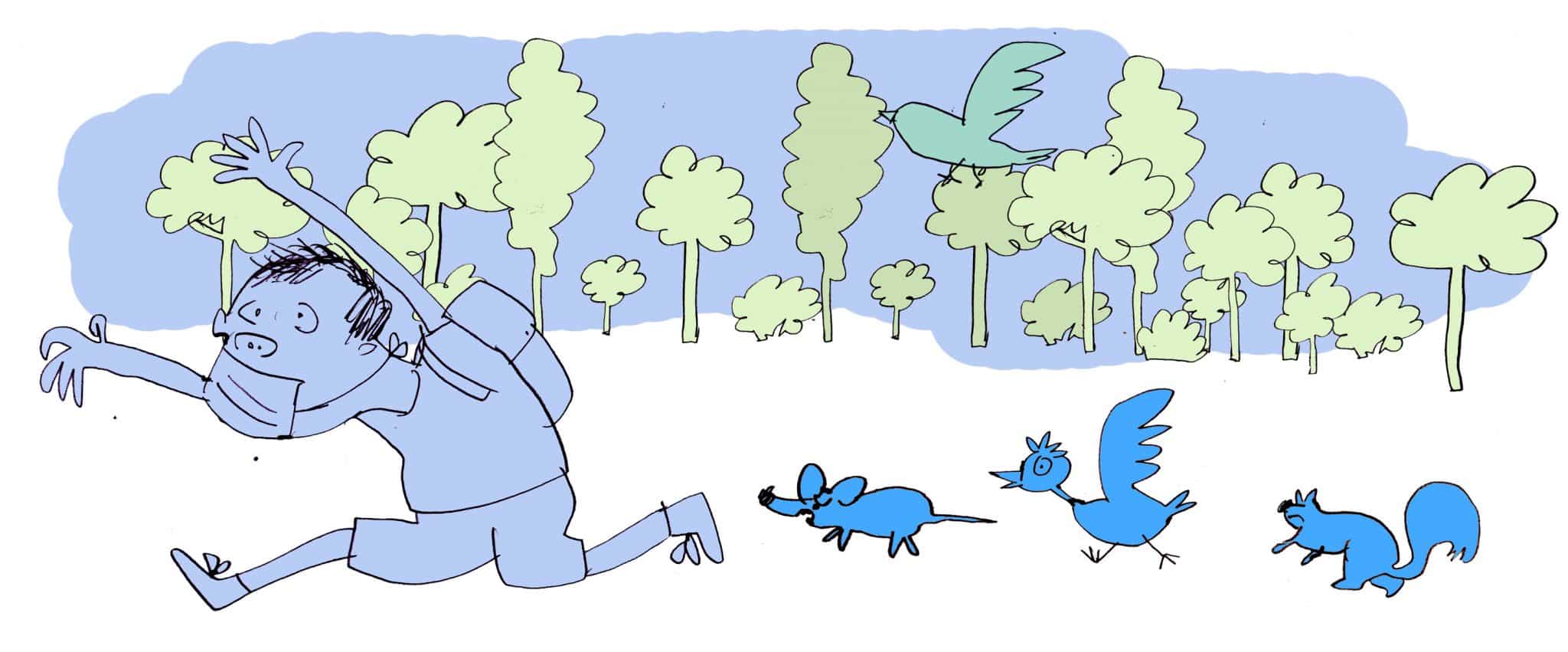 A few months ago, after the confinement, I chose to hide myself away in this wild place, running as far as I could from the coronavirus and election campaigns. Now, after having received formal death threats from several different animals, stung by a wasp, and fallen down a hole leading to the lair of some unknown monster, the coronavirus seems now a minor threat. At least you can neutralize it with hydroalcoholic gel. Not long after arriving here, I got cornered by an angry mountain goat — its scientific name could be something like filius canis impale idiotum — I tried to scare it off with hydroalcoholic gel. The next thing I knew, I had a terrible pain in my back, my head was sunk in the grass, my body stretched out, and I could just see the goat chewing on a bottle of gel in the distance.
