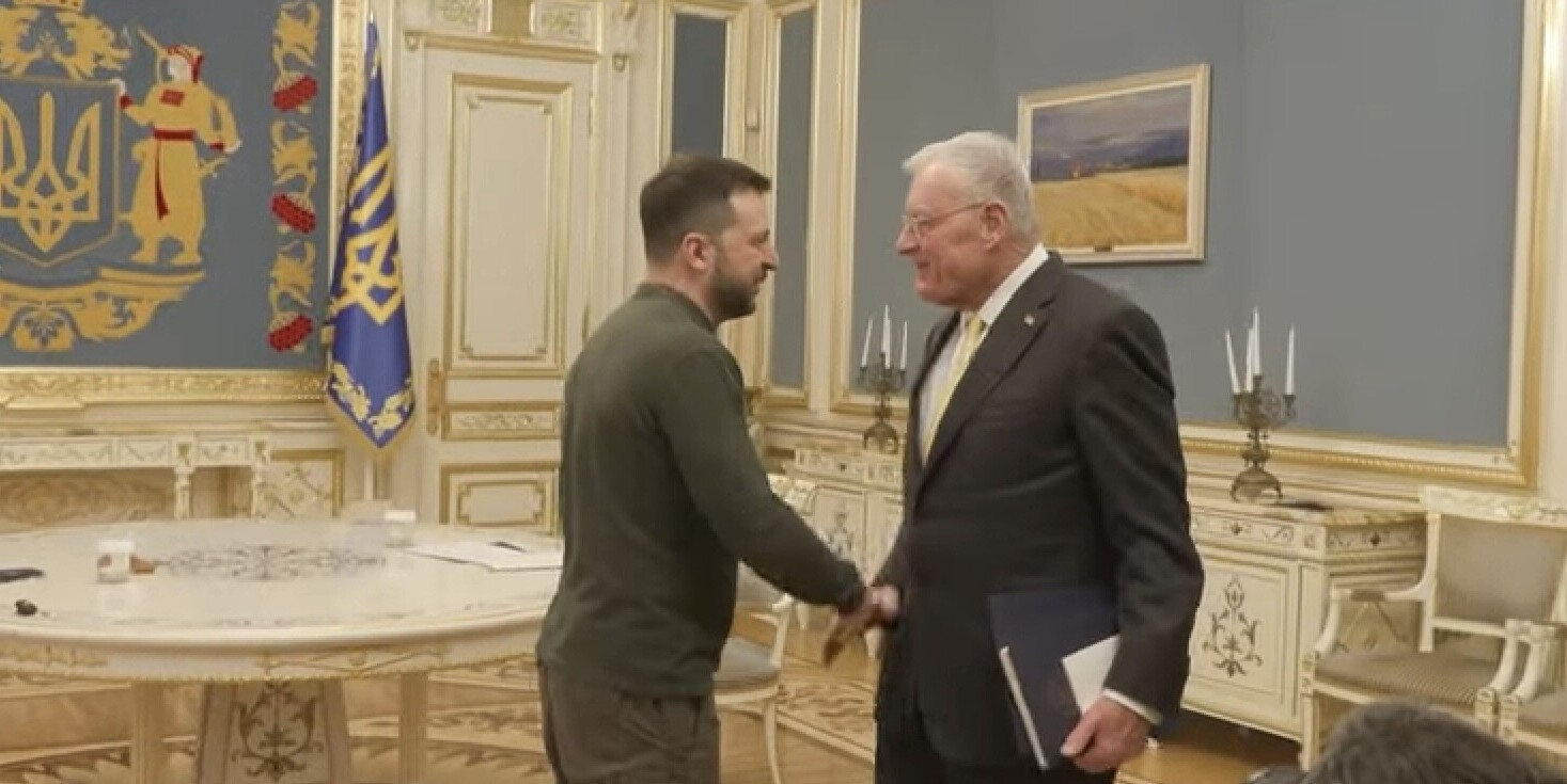 Ukrainian President Volodymyr Zelenskyy and U.S. special envoy Keith Kellogg meet in Kyiv on Feb. 20, 2025 (AFP News Agency/Youtube)