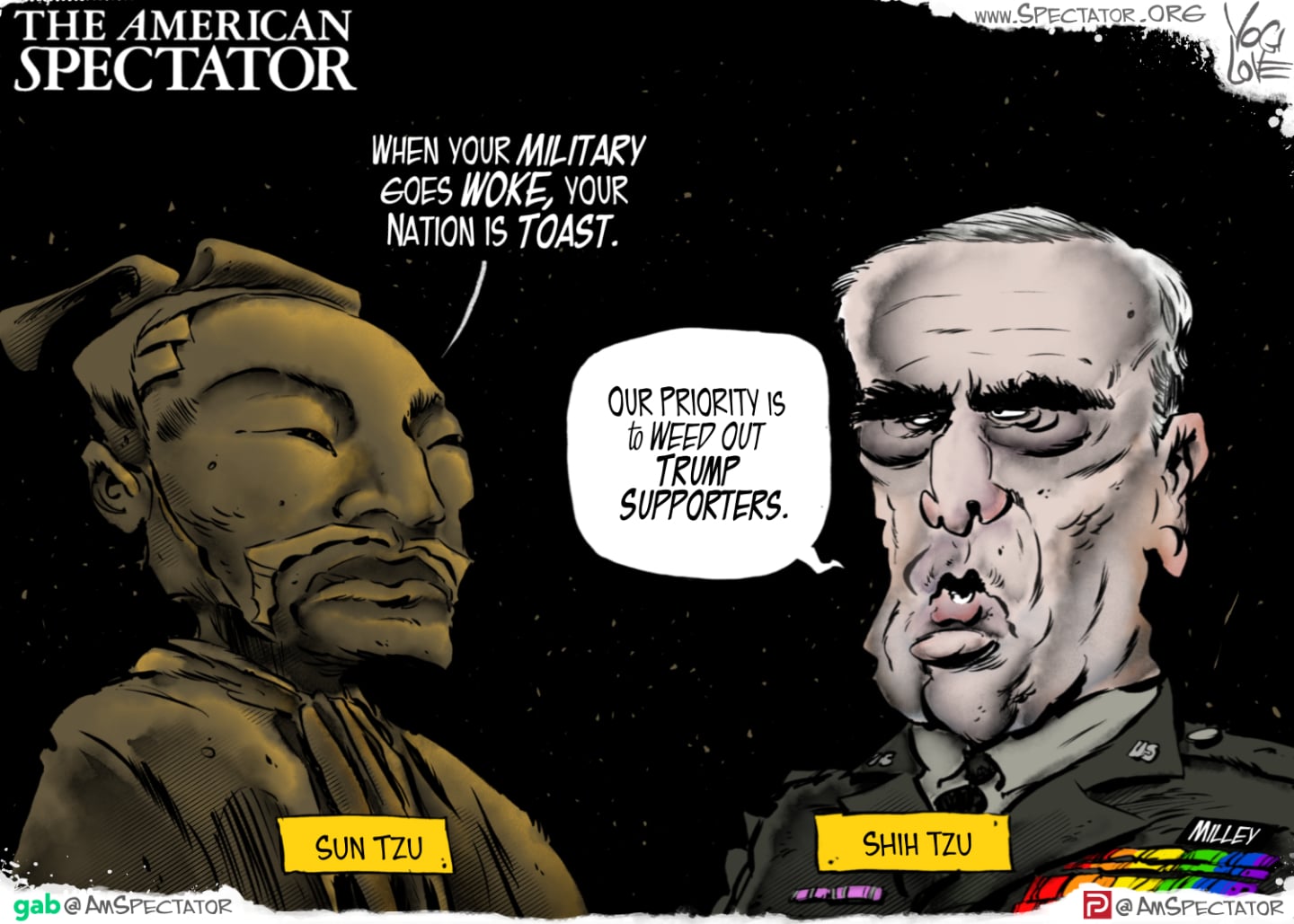 “Two Tzus,” editorial cartoon by Yogi Love for The American Spectator, September 28, 2021.