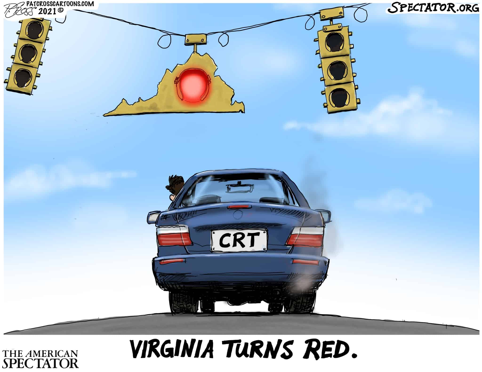 “Virginia Turns Red,” editorial cartoon by Patrick Cross for The American Spectator, November 3, 2021.