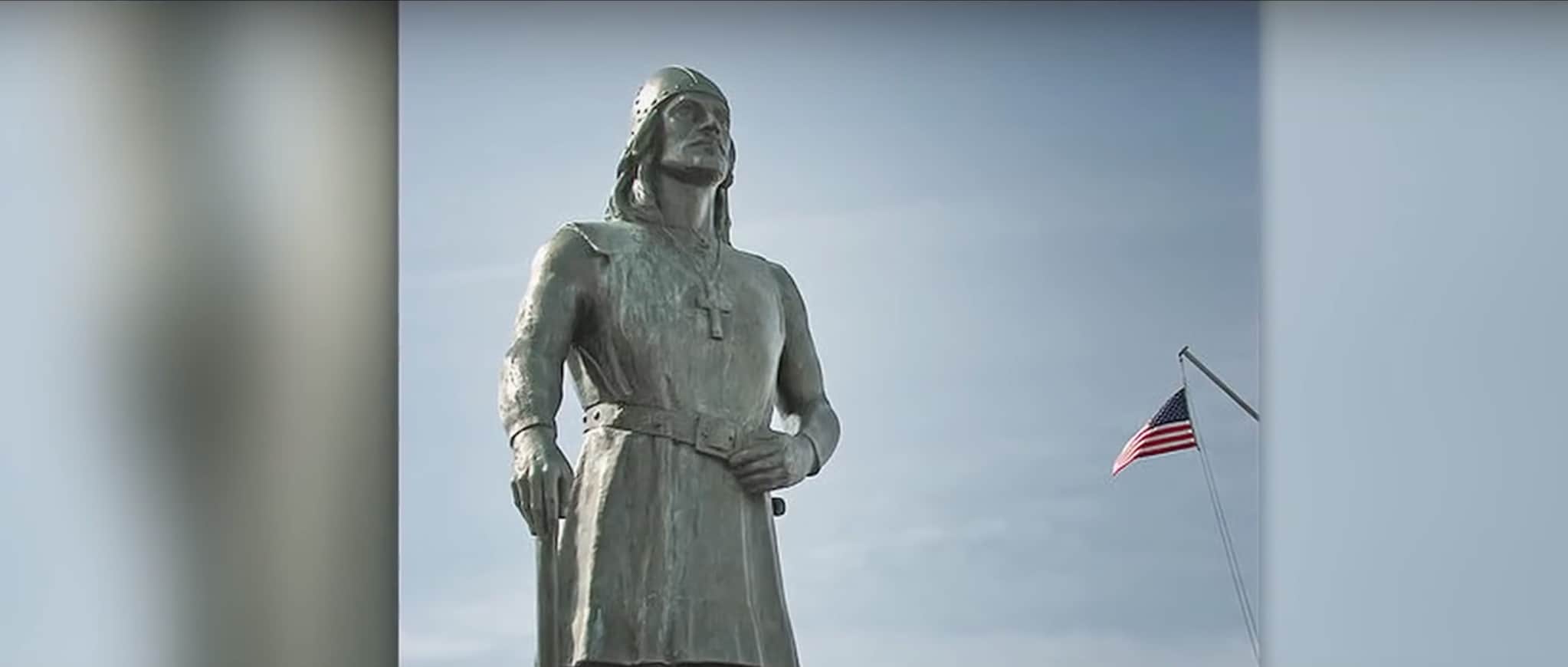 Visit pretty much any metropolitan center in the U.S. — from Boston, Newport News, and New York City to Chicago, St. Paul, Cleveland, and even all the way out west to Los Angeles and Seattle — and the chances are he is right there looking back at you. City centers, county parks, marinas, fishing terminals, and scenic views: You can hardly miss him. Leif Erikson. Cloak tied carelessly around his shoulders, negligently leaning on his scramasax sword or double war axe and capped with his signature horned helmet. Leif Erikson in bronze, Leif Erikson in stone, Leif Erikson in wood. Leif Erikson on murals, store fronts, cultural centers, even billboards and bus stop graphics. Good ole Leif is inviting you to “get your Viking on.”