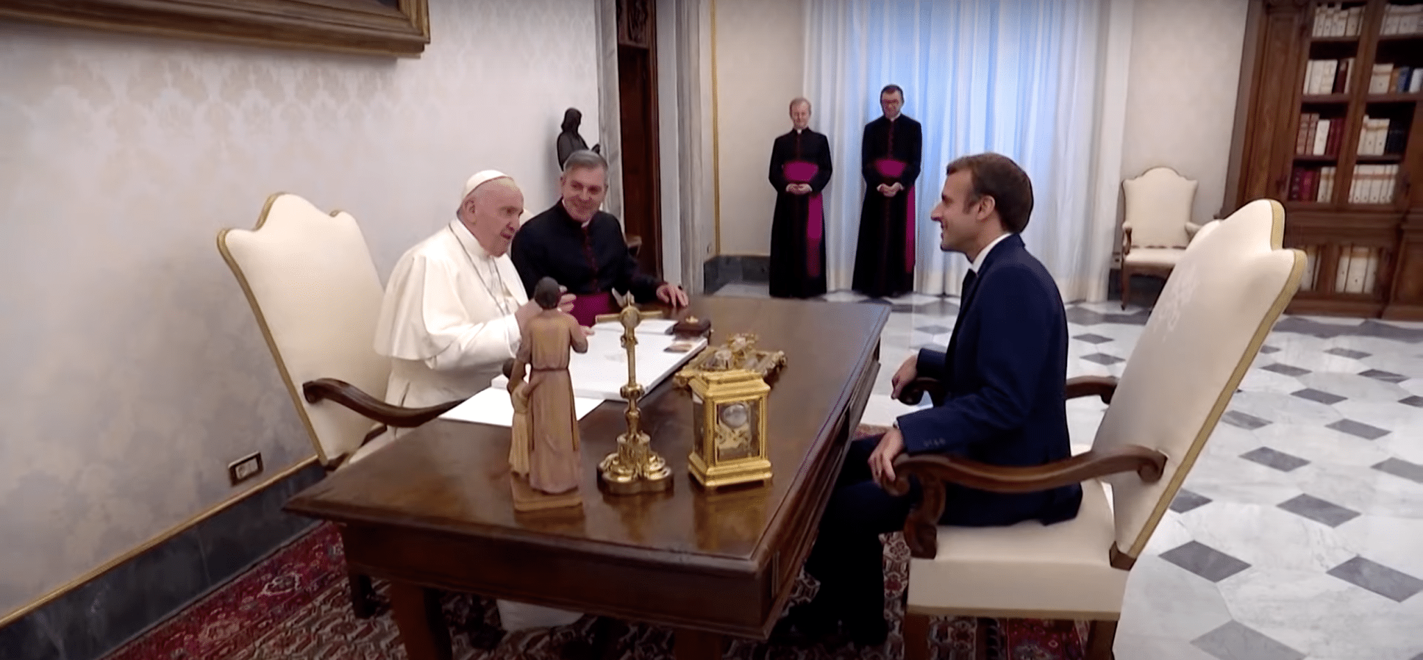 French President Emmanuel Macron presents Pope Francis with a first edition of “Perpetual Peace” by Immanuel Kant on Oct. 24, 2022 (ROME REPORTS in English/YouTube)