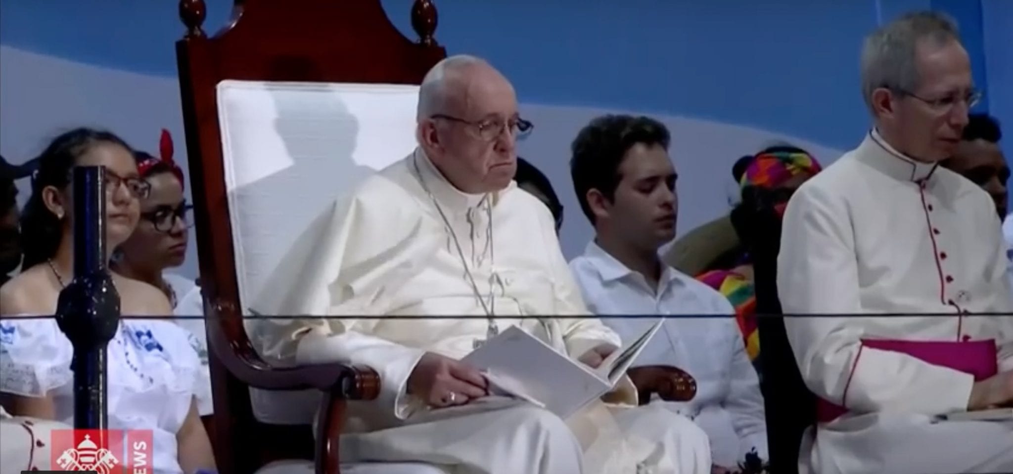 The pope likes to pit the lawless against the lawful and imply that the latter lack morality for simply asking their government to keep them safe. He seeks to rally members of the Church not around her actual teachings but around his own divisive left-wing politics. In his address to the bishops of Central America during the trip, he urged them to embrace an even more political role. He said that he wanted them to “think with the church,” by which apparently he means the political priorities of the current hierarchy of the church. According to the traditional mind of the Church, the duty of a bishop is to save souls, not spout off about complicated political matters beyond his competence. But for Pope Francis, the kingdom of heaven holds less appeal than the politics of the moment. At times during his visit to Panama his politicizing of Christianity made him sound pantheistic: “Your Son’s way of the cross continues in the plea of our mother earth, profoundly wounded by the pollution of her skies, the barrenness of her fields, the contamination of her waters, trampled underfoot by disregard and a fury of consumption beyond all reason.”