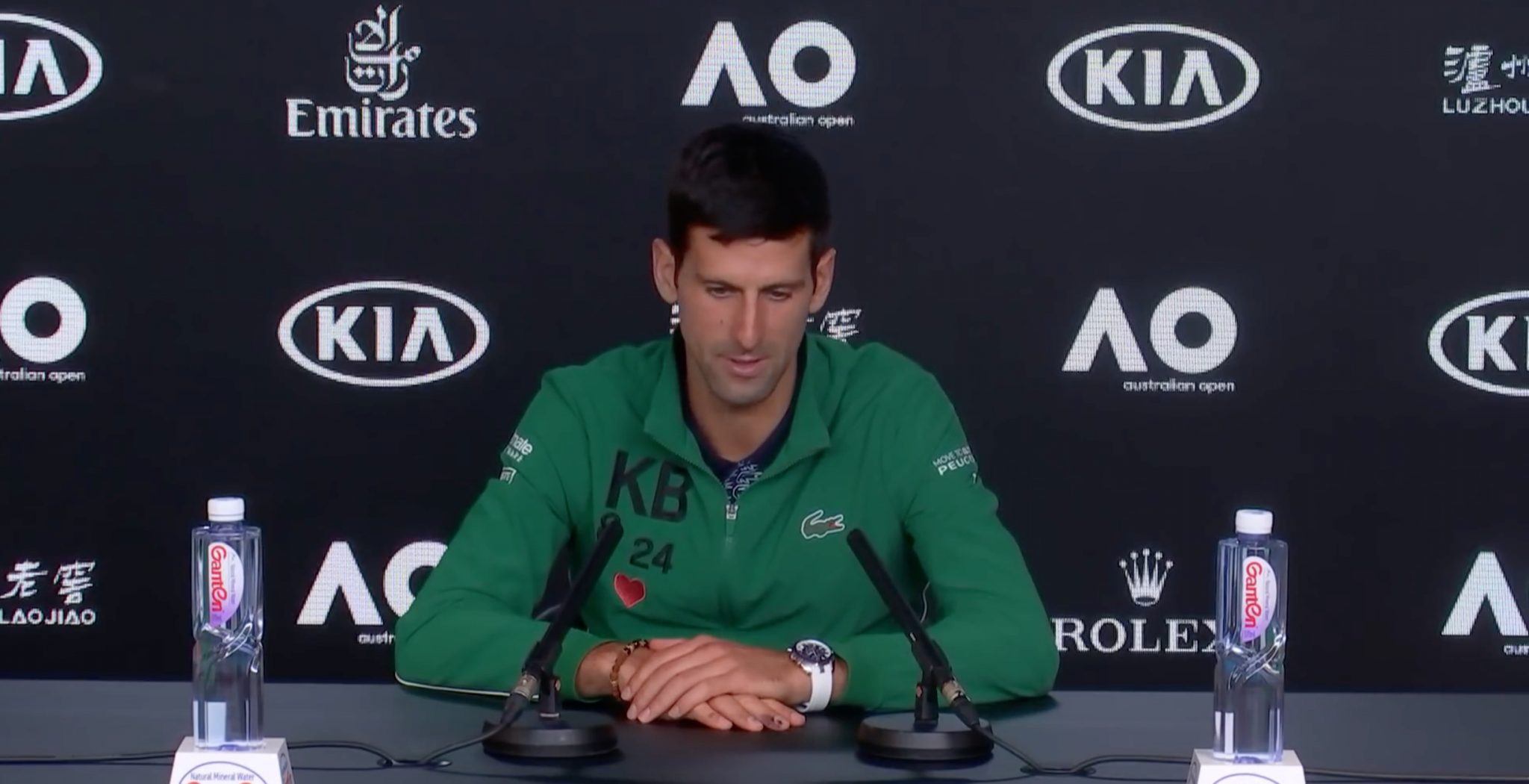He referred to the terrible bush fires that have ravaged southeastern Australia and that came close to forcing the tournament’s cancellation due to atrocious air quality. He mentioned the vast losses, property and plant and animal life — and of course human life. The players and Tennis Australia (Australia’s USTA) kicked in with generous donations to support rescue and rebuilding; Djokovic mentioned this somberly and with restrained emotion, and he seemed to be saying — you cannot really be sure, watching from so far away — that when you do your very, very best in sports, as he did this past fortnight, you are showing how important but also how impossible it is to do so well in human affairs, which never end decisively as games do.
