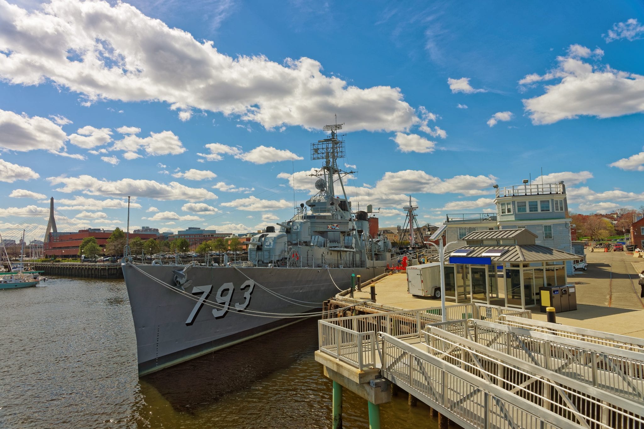 Fletcher-class destroyer named after Captain Cassin Young moored in the Navy Yard in Boston. (Roman Babakin/Shutterstock.com)