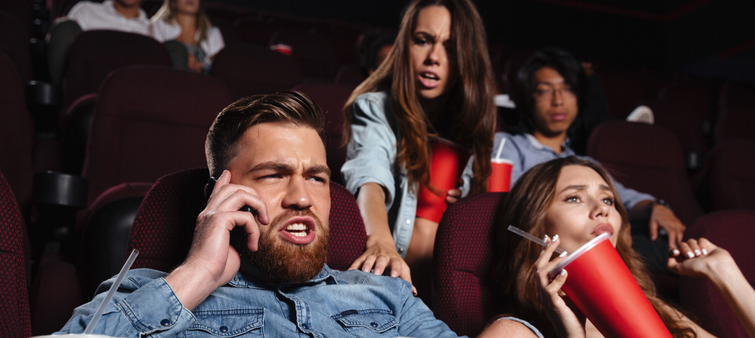 Rude man on the phone in a theater (Dean Drobot/Shutterstock)